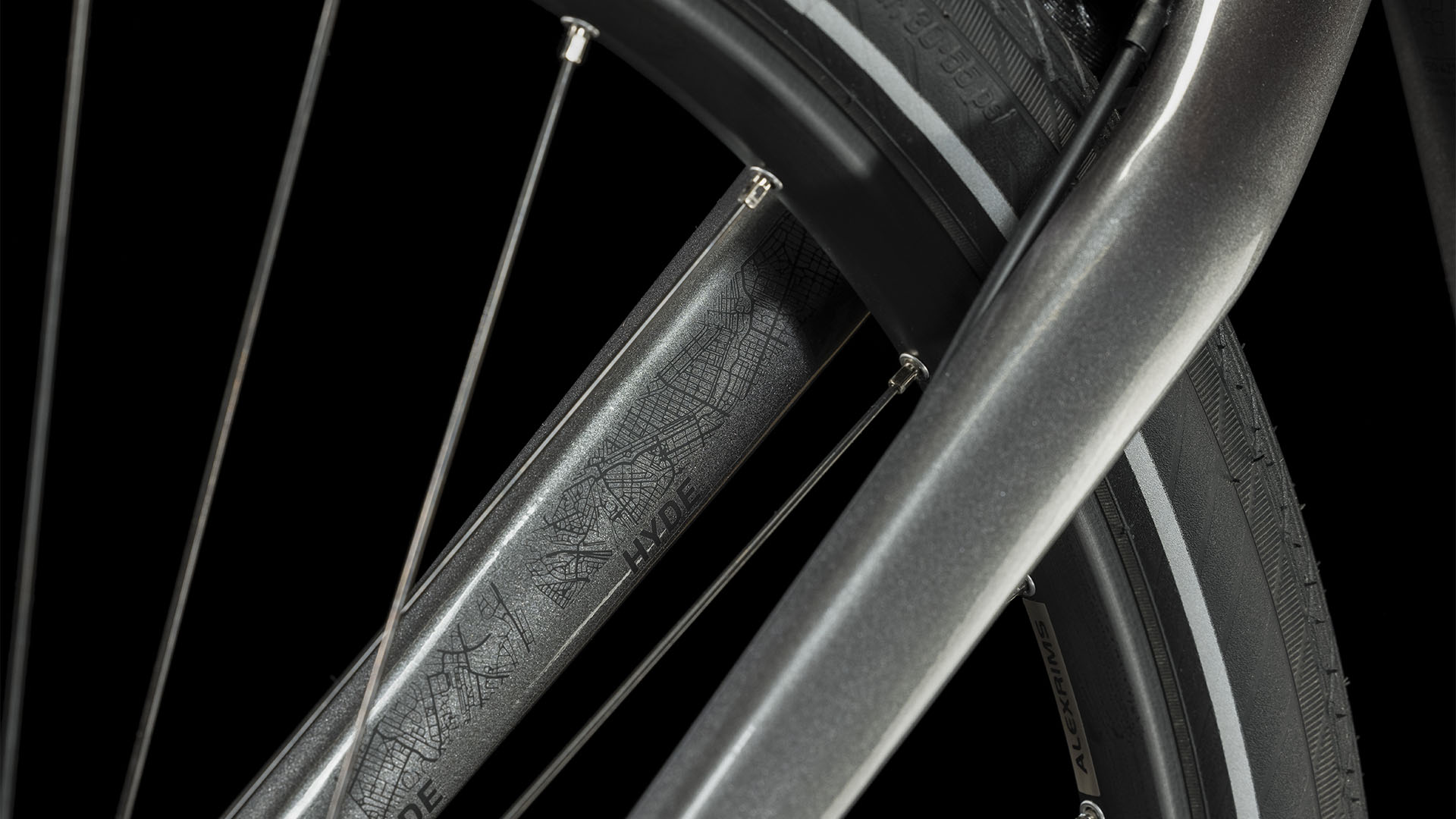Die Fahrradkuriere der 80er und 90er waren damals nicht ohne Grund mit Mountainbikes in der City unterwegs – insofern haben wir uns bei der Entwicklung des Hyde auch an unseren 29er-Hardtails orientiert. Doppelt konifizierte Aluminiumrohrsätze bilden eine stabile, langlebige, leichte und agile Rahmenstruktur, die dank nahtlos integrierter Montagepunkte die individuelle Nachrüstung mit Gepäckträger und Schutzblechen ermöglicht. Außerdem bietet sie genügend Platz für zwei Trinkflaschenhalter – dadurch bist du vor allem auf längeren Touren durch die Stadt immer optimal mit Flüssigkeit versorgt. Schließlich komplettiert eine schlanke, steife Gabel den Rahmen, ihr Spezialgebiet: ein knackiges, präzises Lenkverhalten in Kombination mit wenig Gewicht und einem eleganten Look.