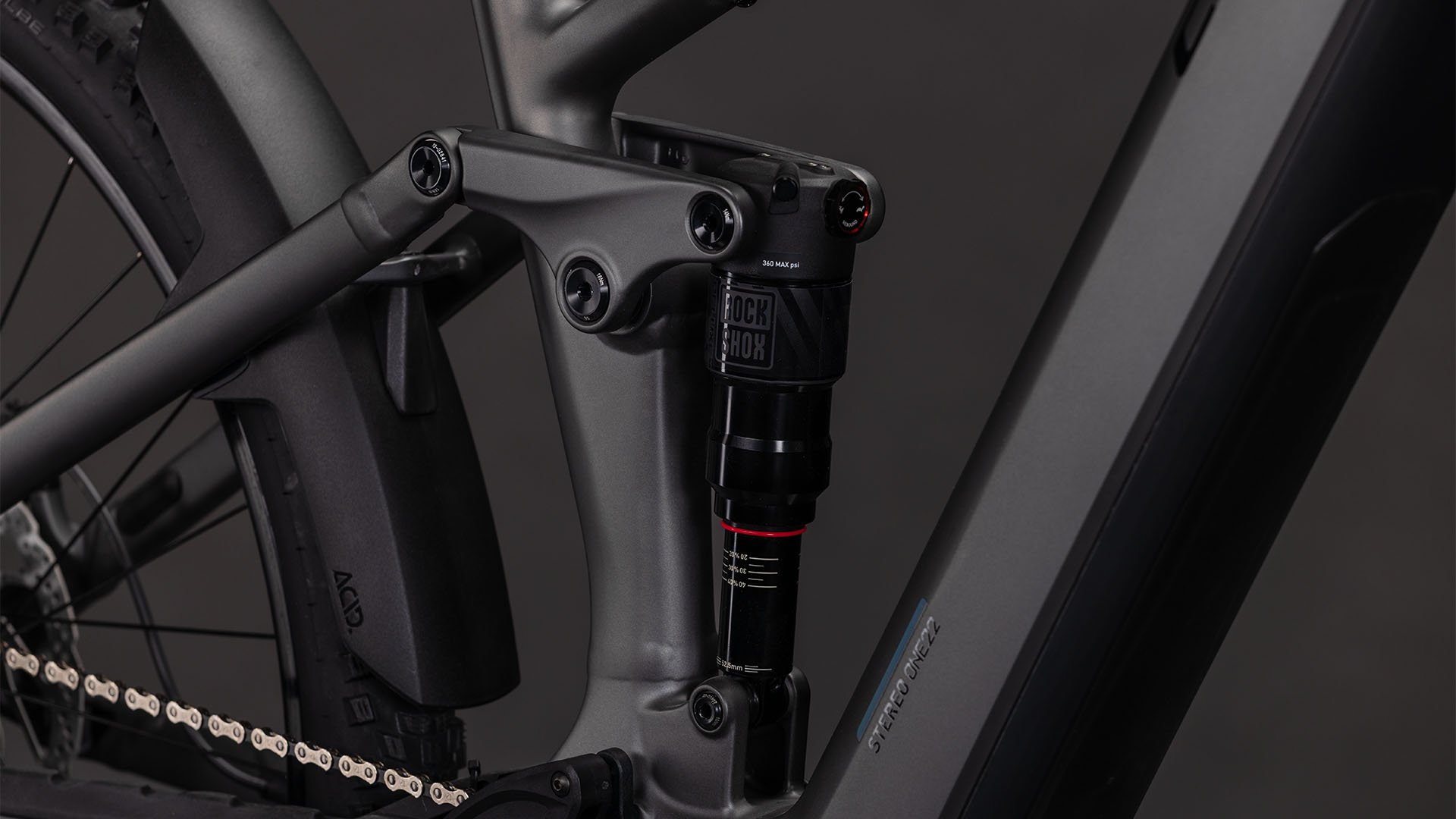 Das Stereo Hybrid ONE22 Race 800 empfiehlt sich als das ideale E-Fully für alle möglichen und unmöglichen Trail-Abenteuer. Verantwortlich für seine hohe Reichweite und Performance sind dabei der leistungsstarke Bosch CX Motor mit Purion 200 Display und 800 Wh starkem Akku. Die einwandfreie Bodenhaftung und Spurtreue der griffigen 2.6 Zoll Schwalbe Pneus verdankt das Bike der Rockshox Psylo Silver RC Federgabel im Team mit dem Deluxe Select R Dämpfer. Außerdem packen die hydraulischen Scheibenbremsen von Shimano bei Bedarf beherzt zu und vermitteln zu jeder Zeit ein top kontrolliertes Fahrgefühl. Ein weiteres Highlight ist die superzuverlässige Shimano 12-fach XT Schaltung, die per Klick vom Lenker aus geschmeidig und präzise von Gang zu Gang wechselt. Und, wohin soll's als Nächstes gehen?