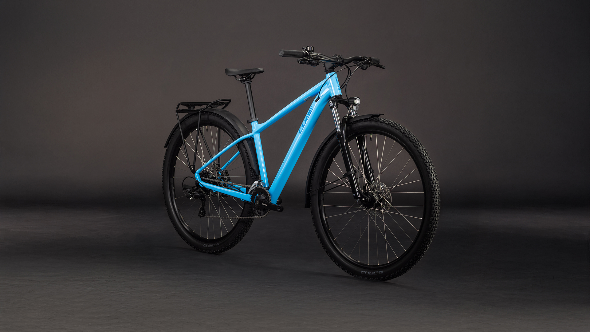 Das Aim ONE FE hat eine unglaubliche Bandbreite an Skills auf Lager und fühlt sich beim Pendeln in die Arbeit ebenso wohl wie bei längeren Offroad-Ausfahrten. Dank Zubehör-Vollausstattung in Form von Schutzblechen, Gepäckträger, Beleuchtungsanlage und Seitenständer geht's ebenso stylish wie komfortabel durch den Stadtverkehr. Wenn das Wochenende naht – und mit ihm die geplante Abenteuerradtour –, spielen die griffigen 2.25 Zoll Offroad-Reifen, die 100 mm Federgabel und die breit gefächerte 2x8-fach Shimano Schaltung ihre Qualitäten aus. Aber egal ob Asphalt oder Gelände, die hydraulischen Shimano Scheibenbremsen packen stets beherzt zu und bringen das Bike bei jeder Witterung sicher und kontrolliert zum Stehen.