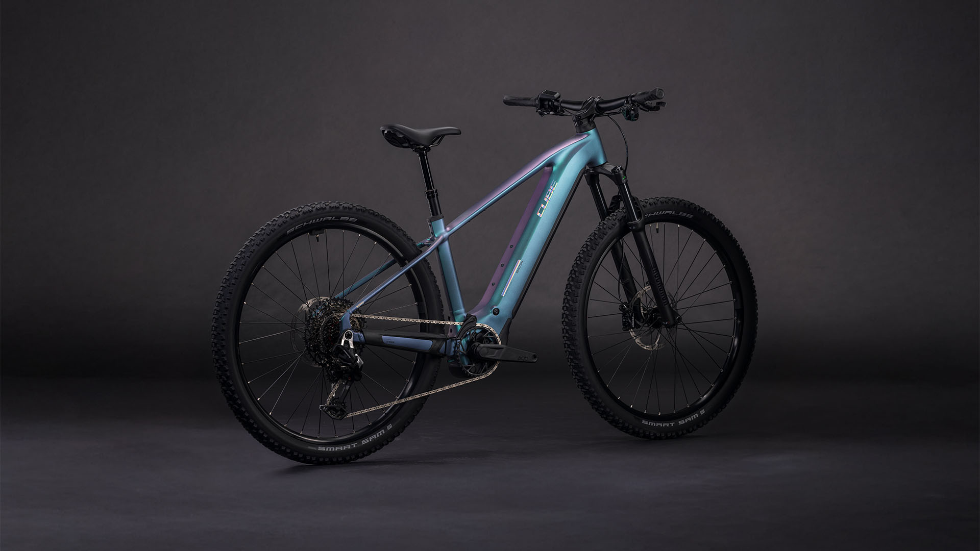 Mit seiner robusten Konstruktion und dem 800 Wh starken Akku meistert das Reaction Hybrid Race alle Routen souverän. Zudem ist dieses E-Hardtail PowerMore-ready, das heißt, es können bei Bedarf weitere 250 Wh für noch mehr Reichweite mitfahren. Sein Bosch CX Motor mit Smart System ist für tatkräftige Unterstützung im Vorwärts zuständig, dabei hat die 12-fach Sram Transmission 90 für jede Situation unterwegs den richtigen Gang parat. Für höchsten Fahrkomfort und 1a-Kontrolle haben wir 2.6 Zoll breite, griffige Schwalbe Pneus und eine Rockshox Recon Silver Luftfedergabel verbaut. Apropos Kontrolle: Die hydraulischen 4-Kolben-Scheibenbremsen packen bei Bedarf kräftig zu und verzögern das Bike bei allen Bedingungen zuverlässig und sicher – und eine versenkbare Sattelstütze ist auch mit dabei. Gern abseits markierter Wege unterwegs? Dann nichts wie los!