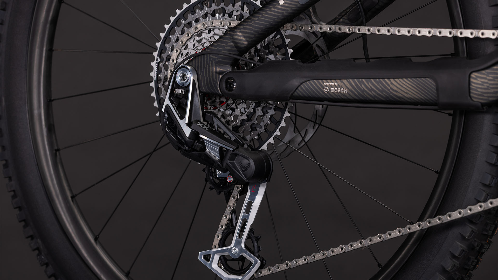 Das Stereo Hybrid ONE44 HPC SLT 800 kommt als das ultimative All-Mountain-E-Bike daher – und mit der entsprechenden Ausstattung! Mit dabei sind die 36 Float Factory Federgabel mit 150 mm Federweg und der Float X Factory Dämpfer mit 140 mm Federweg, beides von Fox. Außerdem die geschmeidig rollenden Schwalbe Albert 2.5 Zoll Pneus auf Newmen Phase 30 Laufrädern für top Bodenhaftung und Spurtreue. Den enormen Vortrieb verdankt das Fully dem Bosch CX-R Motor mit bis zu 100 Nm Drehmoment, der von einem 800 Wh starken Akku gespeist wird. Diese Power wohldosiert auf den Boden bringt der Sram 12-Gang XX Eagle Transmission Antrieb in Zusammenarbeit mit der RaceFace Era Carbonkurbel. Präziseste Geschwindigkeitskontrolle ist das Spezialgebiet der progressiv verzögernden hydraulischen Magura Gustav Pro Scheibenbremsen. Noch mehr Kontrolle beim Bergabfahren auf steilen, ruppigen Trails gefällig? Die versenkbare Sattelstütze macht's möglich. Fazit: kompromisslose Performance und genialer Fahrspaß auf allen Ebenen!