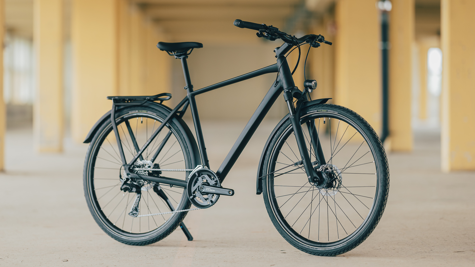 Das CUBE Kathmandu Pro hat alles, was wichtig ist, und kommt ohne unnötigen Schnickschnack aus. Seine schlichte Eleganz und hohen Allround-Qualitäten verdankt das Bike dem integrierten Gepäckträger IC3.0, den Schutzblechen, Vorder- und Rücklichtern und den CUBE FM Seitenständer. Mit seiner robusten Konstruktion liefert dieser Tourer aber auch auf langen Strecken voll ab. Komfortabel dabei: die Suntour Luftfedergabel, die sämtliche Buckel oder Schlaglöcher auf der Strecke glattbügelt, und die Green Marathon Reifen von Schwalbe, deren Gummimischung zu einem großen Teil aus recyceltem Kautschuk besteht – ein Plus für die Umwelt. Shimano steuert seine breit gefächerte Cues 2x10-Gang Schaltung bei – so wird jede Route zum Spaziergang. Dazu passende hydraulische Shimano Scheibenbremsen ermöglichen sichere Bremsmanöver, selbst bei Nässe und voller Beladung. Ob Großstadtdschungel oder Outback: Das Kathmandu Pro ist live dabei!